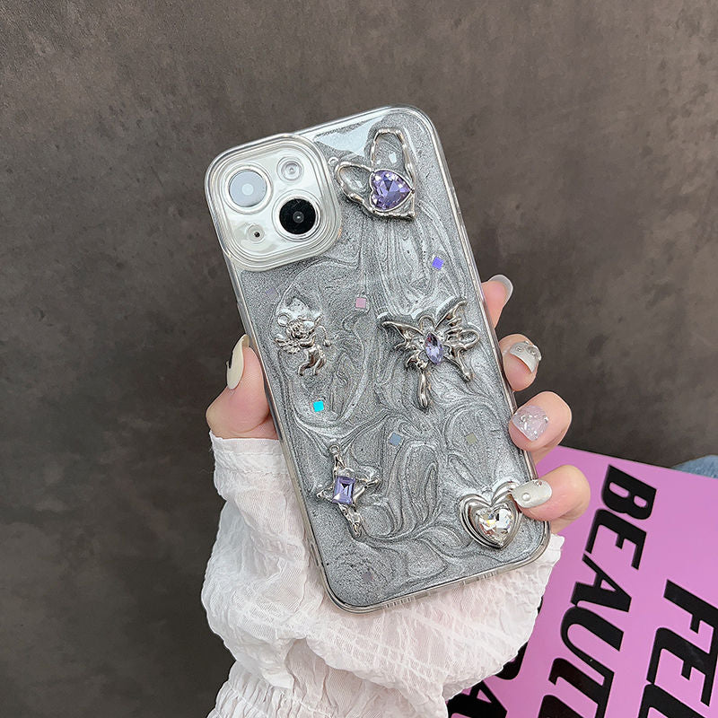 Silver 3D Butterfly With Heart Unique Phone Case